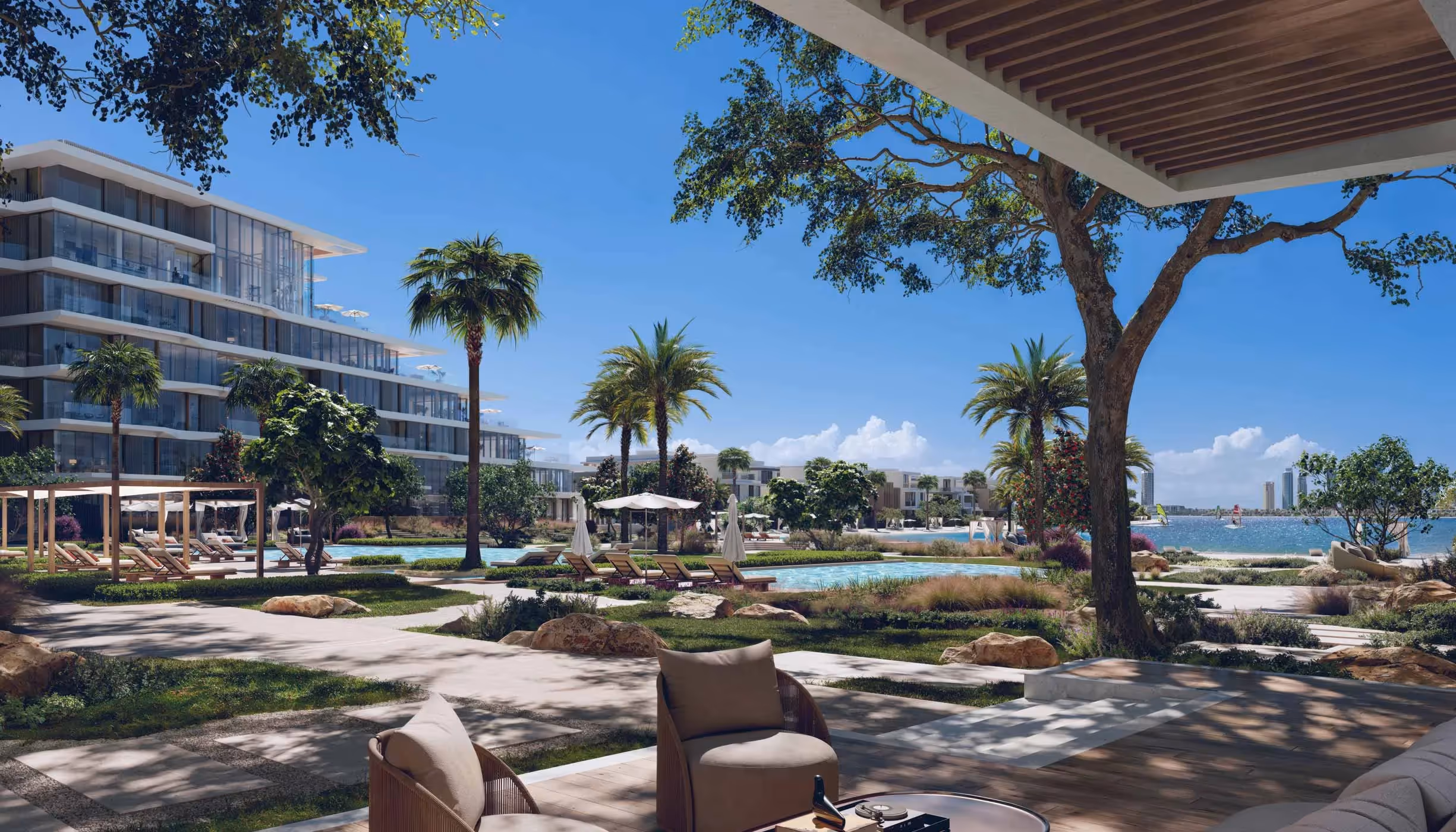 A record-breaking private coastline will provide unparalleled access to the sea. The island will feature more than 80 resorts, theme parks, and striking futuristic architecture. Palm Jebel Ali is designed as a smart city, with a strong focus on sustainability, extensive parklands, and water transport as a primary mode of mobility.