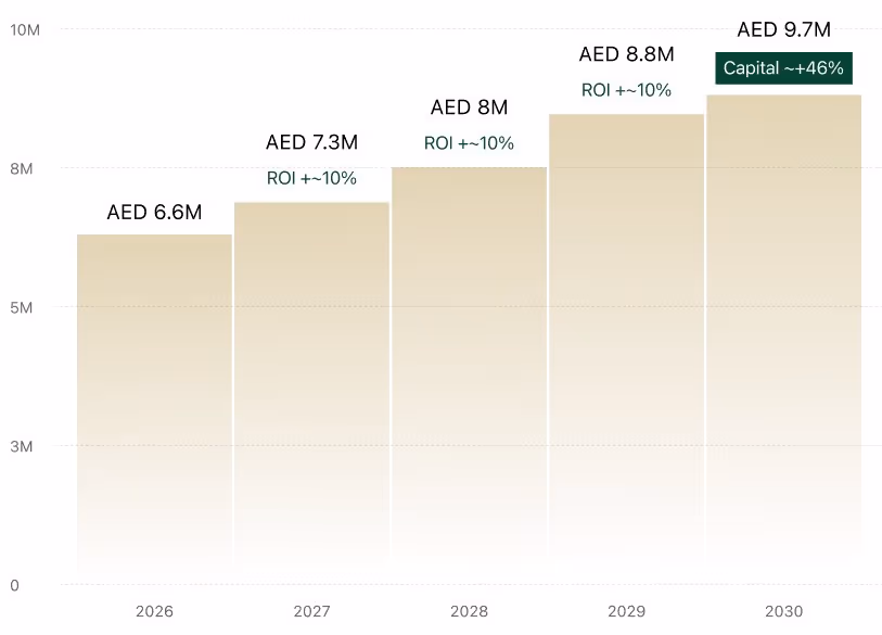 UAE’s real estate market continues to demonstrate steady growth. Purchasing property in this project represents a strong investment in a consistently appreciating asset.