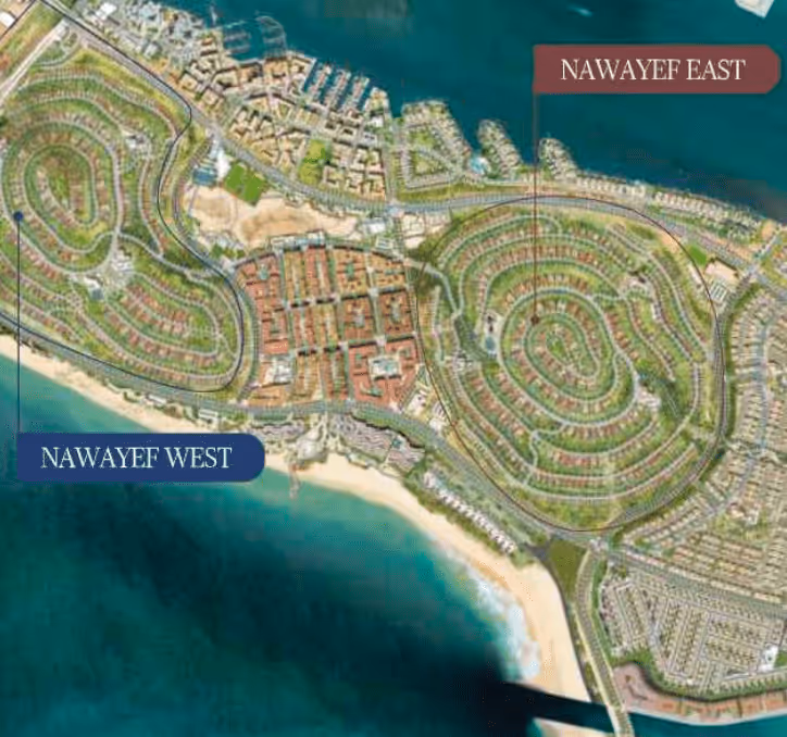 Nawayef East and West are located on Hudayriyat Island, one of Abu Dhabi’s most ambitious lifestyle destinations. Surrounded by pristine beaches, sporting landmarks, and expansive green spaces, the location offers a rare blend of privacy and connectivity. Elevated terrain and island positioning provide breathtaking views of the Arabian Gulf and Abu Dhabi skyline.