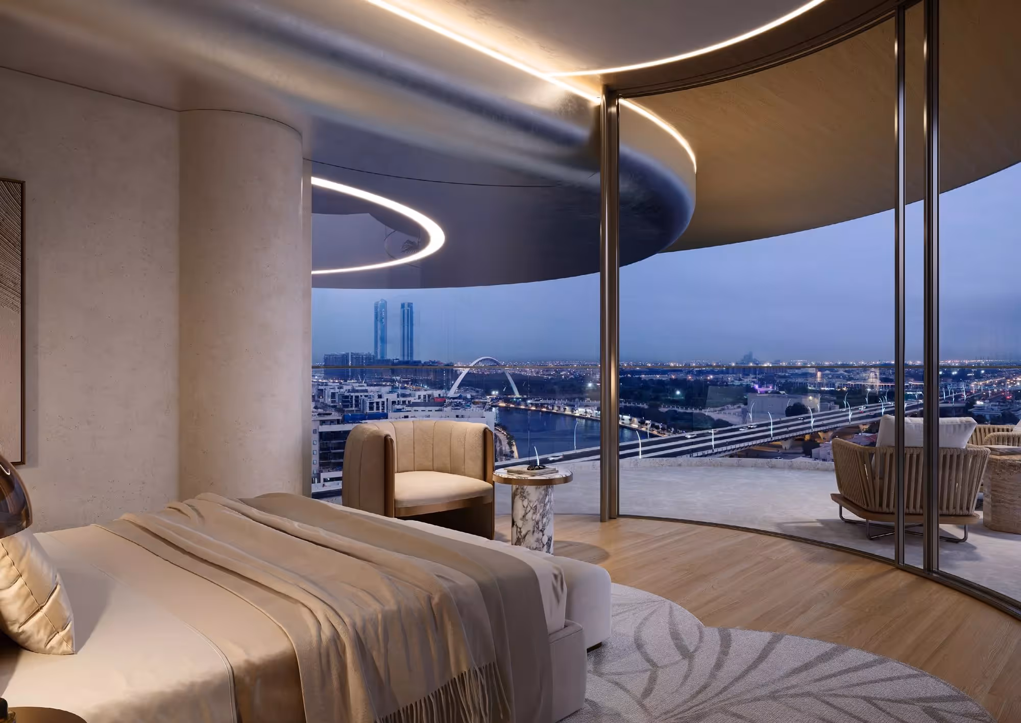 The Rings by PMR is the quintessence of boutique luxury on the waterfront of the Dubai Water Canal in Jumeirah. The architectural concept was designed by the iconic Foster + Partners, while the artistic façade design was created by Mattar bin Lahej, the artist behind the calligraphy of the Museum of the Future. This creative collaboration transforms each residence into a true work of art, where contemporary forms meet the depth of traditional Arabic calligraphy. The complex features only 12 exclusive residences — 8 Sky Mansions and 4 Sky Palaces with 5–7 bedrooms, each occupying an entire floor. Panoramic windows offer 180-degree views of the canal, Burj Khalifa, Burj Al Arab, and Safa Park. This project is designed for those seeking an architectural masterpiece that offers absolute privacy, exceptional scale, and art as a way of life.